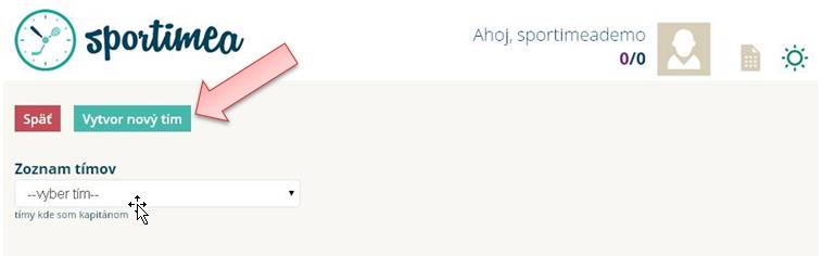 Zadajte: Názov tímu, šport tímu, miesto častého pôsobenia a jednotlivých hráčov timu - zadajte emailové adresy registrovaných hráčov v Sportimea.